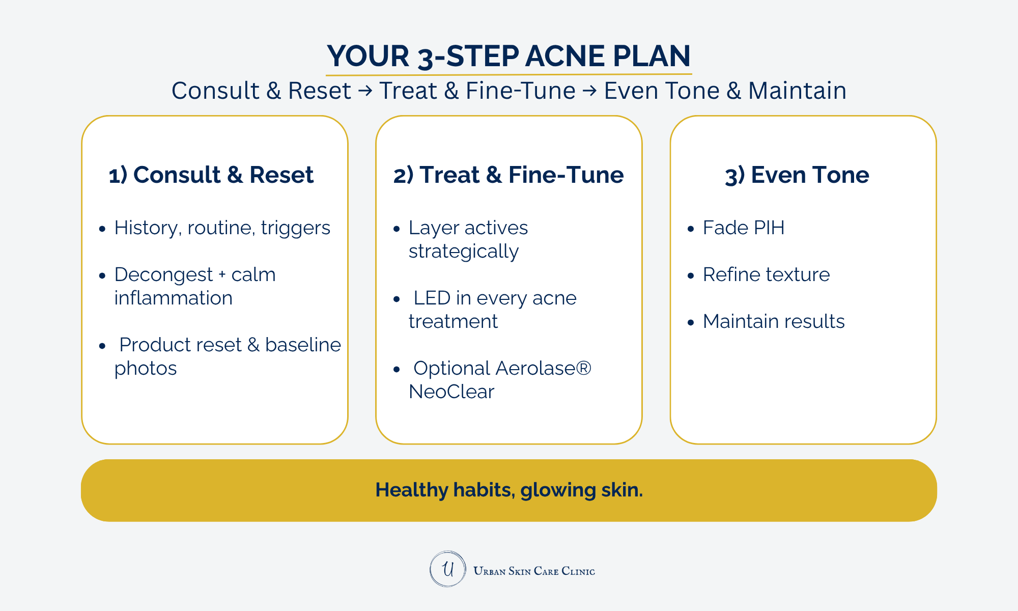 This roadmap walks you through what to expect from your Acne Consultation and First Treatment, how we customize your at-home routine, and which in-clinic steps accelerate progress—so you can stop guessing and start seeing measurable change.