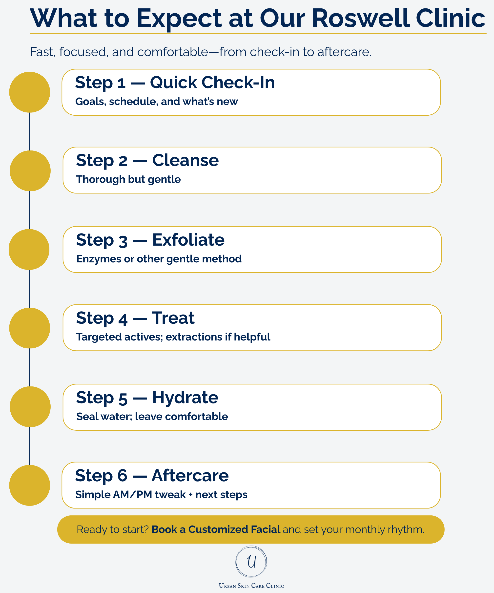 Trade guesswork for a plan that fits your life. Book a Customized Facial at Urban Skin Care Clinic in Roswell and we’ll match the right protocol to your goals and needs, then set a cadence you can actually maintain.
